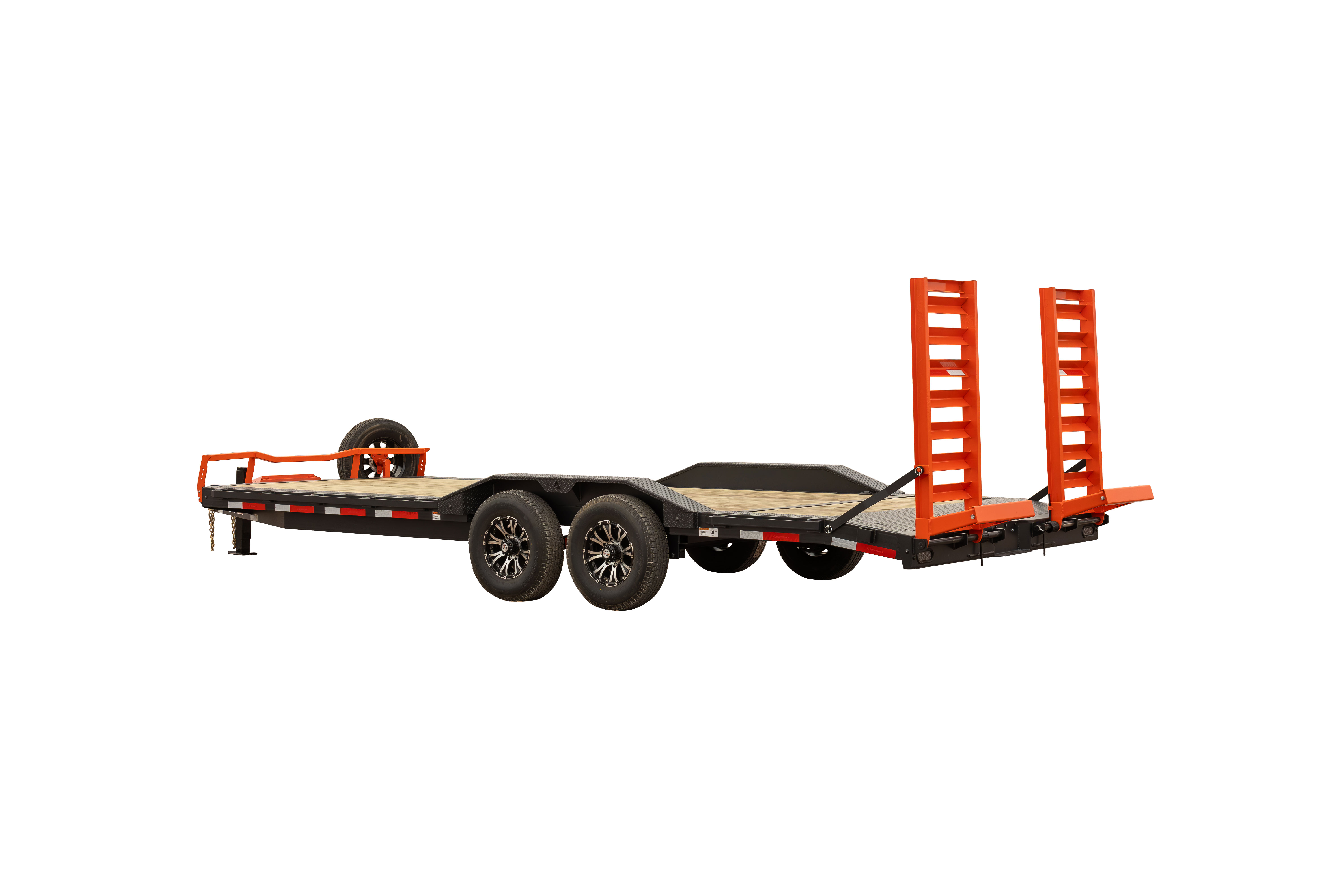 The ECX trailer is a sturdy and reliable heavy-duty equipment hauler, available in three different sizes: 16′ x 83″, 20′ x 83″, and 24′ x 83″. It can handle a maximum weight of 14,000 lbs. and has an impressive load capacity of 12,558 lbs. With a deck height of 26″ and a 2″ treated lumber deck, this trailer can handle heavy equipment with ease. Its 6″ channel main frame and 3″ channel cross-members, spaced 16″ apart, provide strength and durability. The two electric axles have a rating of 7,000 lbs. and feature 10-ply radial tires for superior traction and stability. The ECX offers a range of options to customize the trailer to your specific needs, including axle configurations, tail options, and deck options. The powder coat finish ensures that the trailer will look good for years to come, and it comes with a 3-year structural warranty and a 1-year paint warranty. Safety features include 3/8″ G70 safety chains, an electric breakaway kit, and 3M DOT compliant reflective tape, making this trailer a safe and reliable option for hauling heavy equipment.