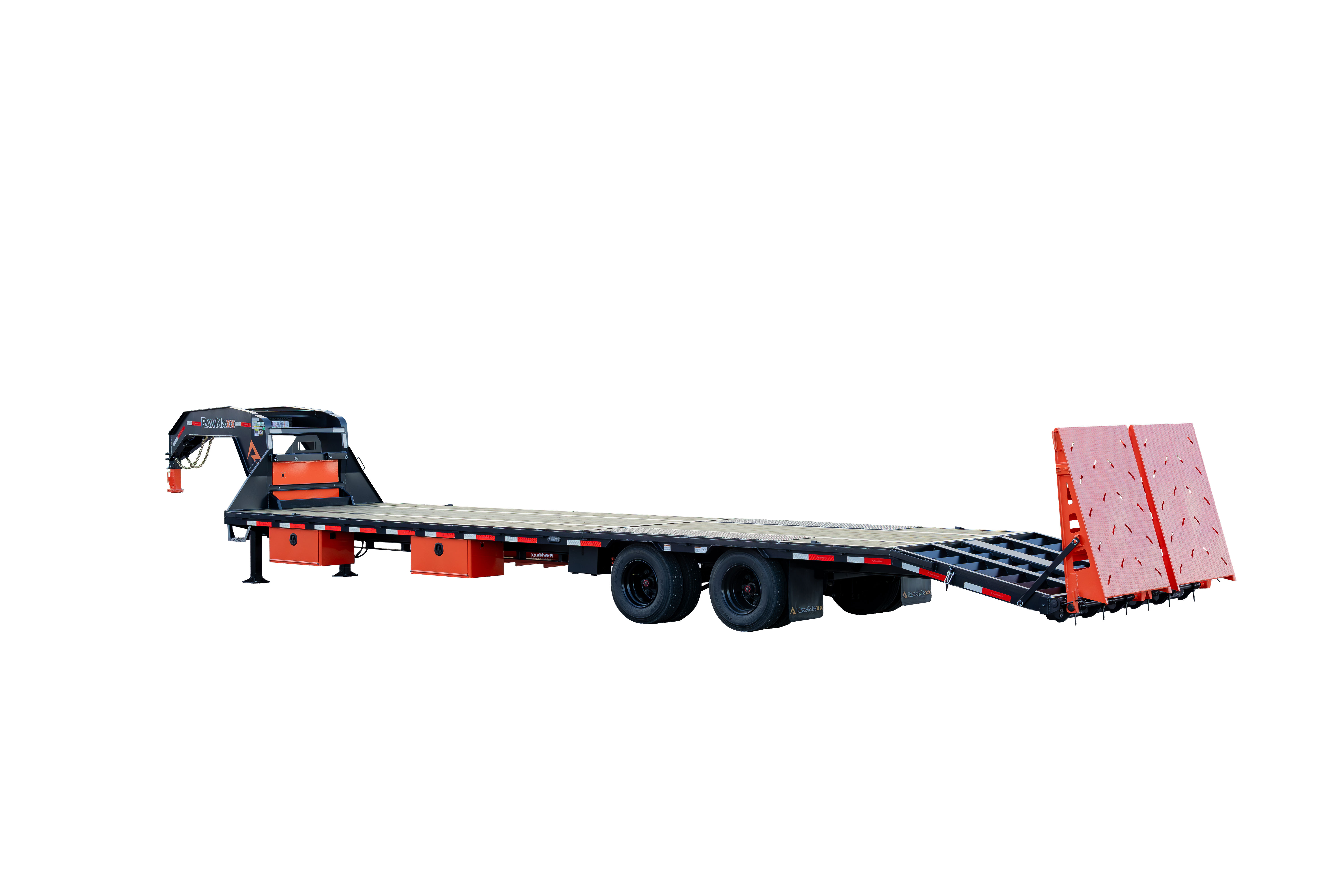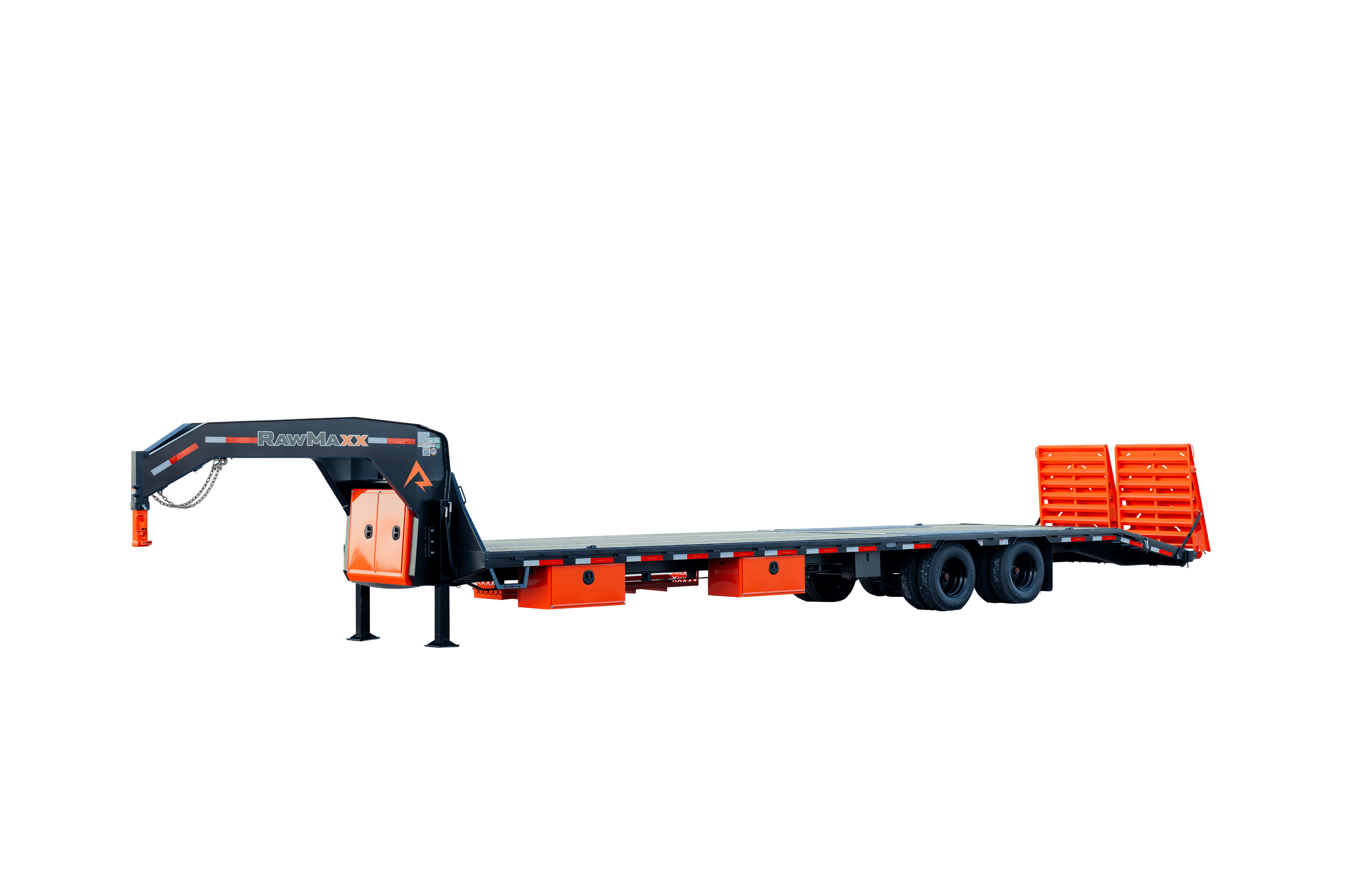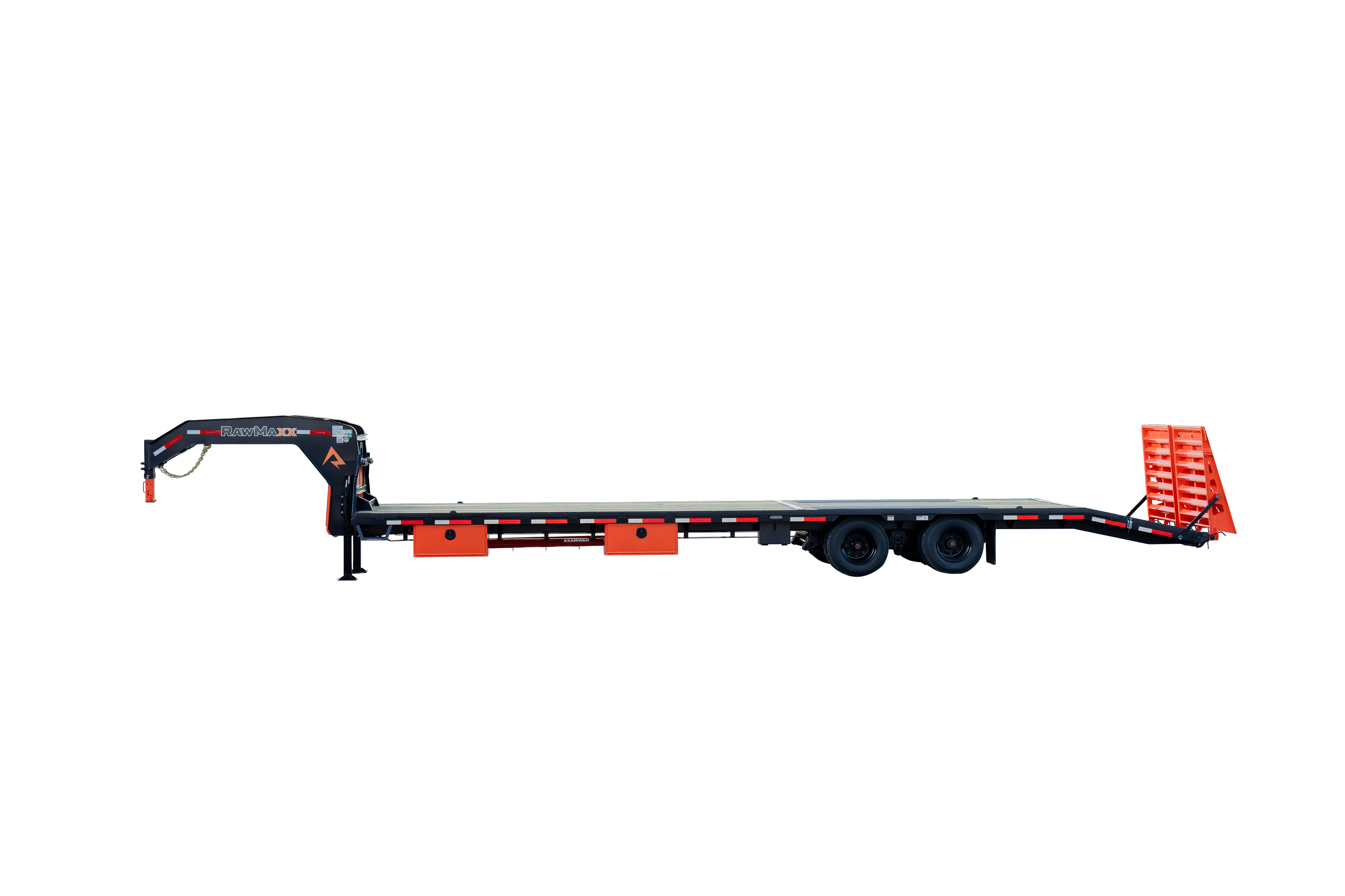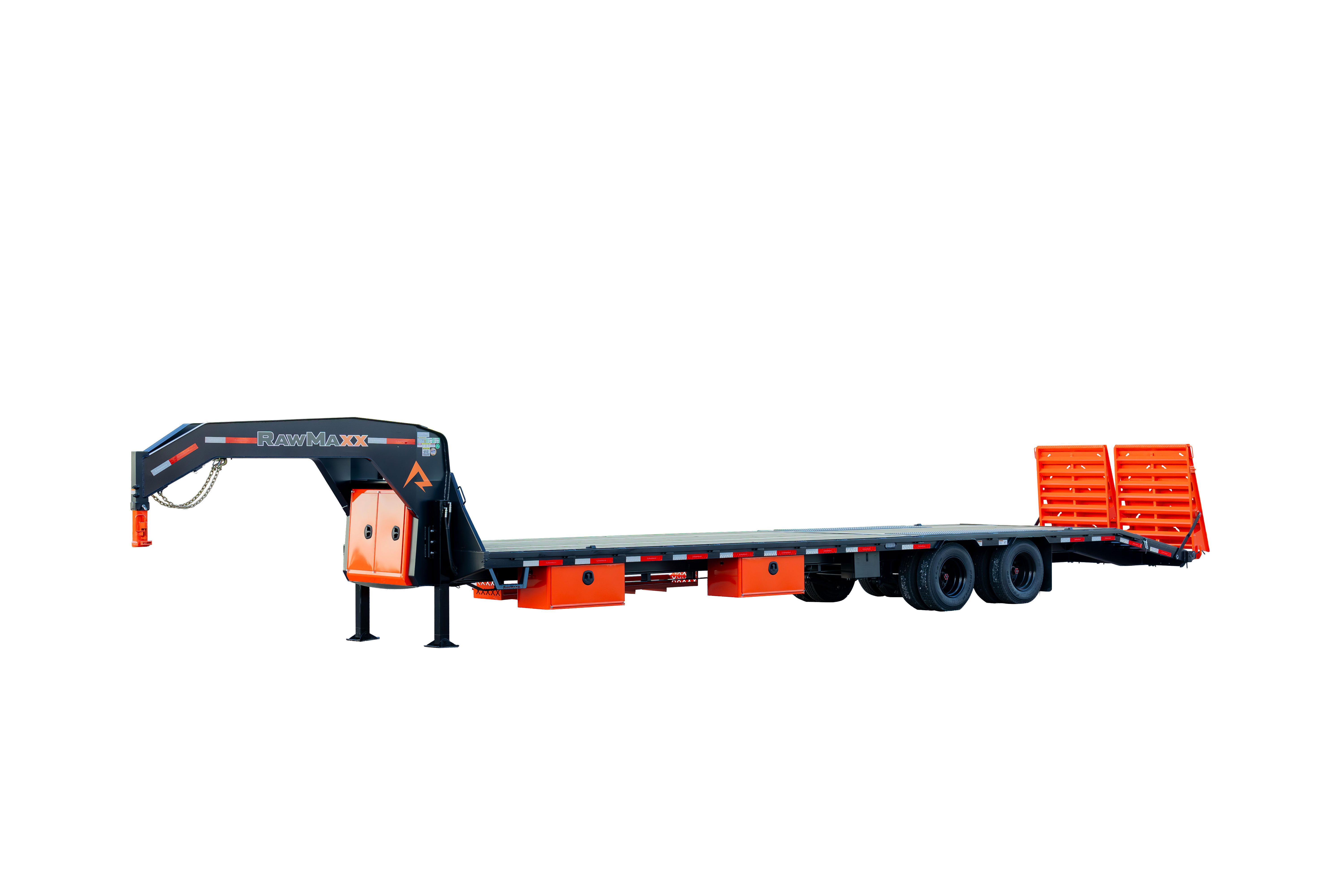 The FDX Dual Trailer by Rawmaxx offers a durable and reliable solution for hauling heavy loads. Available in various sizes, this trailer has a weight rating of 20,000 lbs. with a load capacity of up to 17,304 lbs. The trailer is constructed with a 12″ x 19 lbs. I-beam main frame and features a 2″ treated lumber deck flooring, along with 4 welded D-rings for secure loading. The trailer is equipped with a 2-5/16″ ball coupler, 10,000 lbs. side wind drop legs, and safety chains for added security. Radial tires, electric brakes, and slipper spring suspension provide a smooth ride, while LED lighting ensures visibility and safety on the road. With additional options such as different axle and suspension types, tail configurations, and jack and winch options, the FDX Dual trailer can be customized to meet specific hauling needs. Overall, the FDX Dual trailer is a top choice for those seeking a rugged and versatile trailer for heavy-duty hauling.