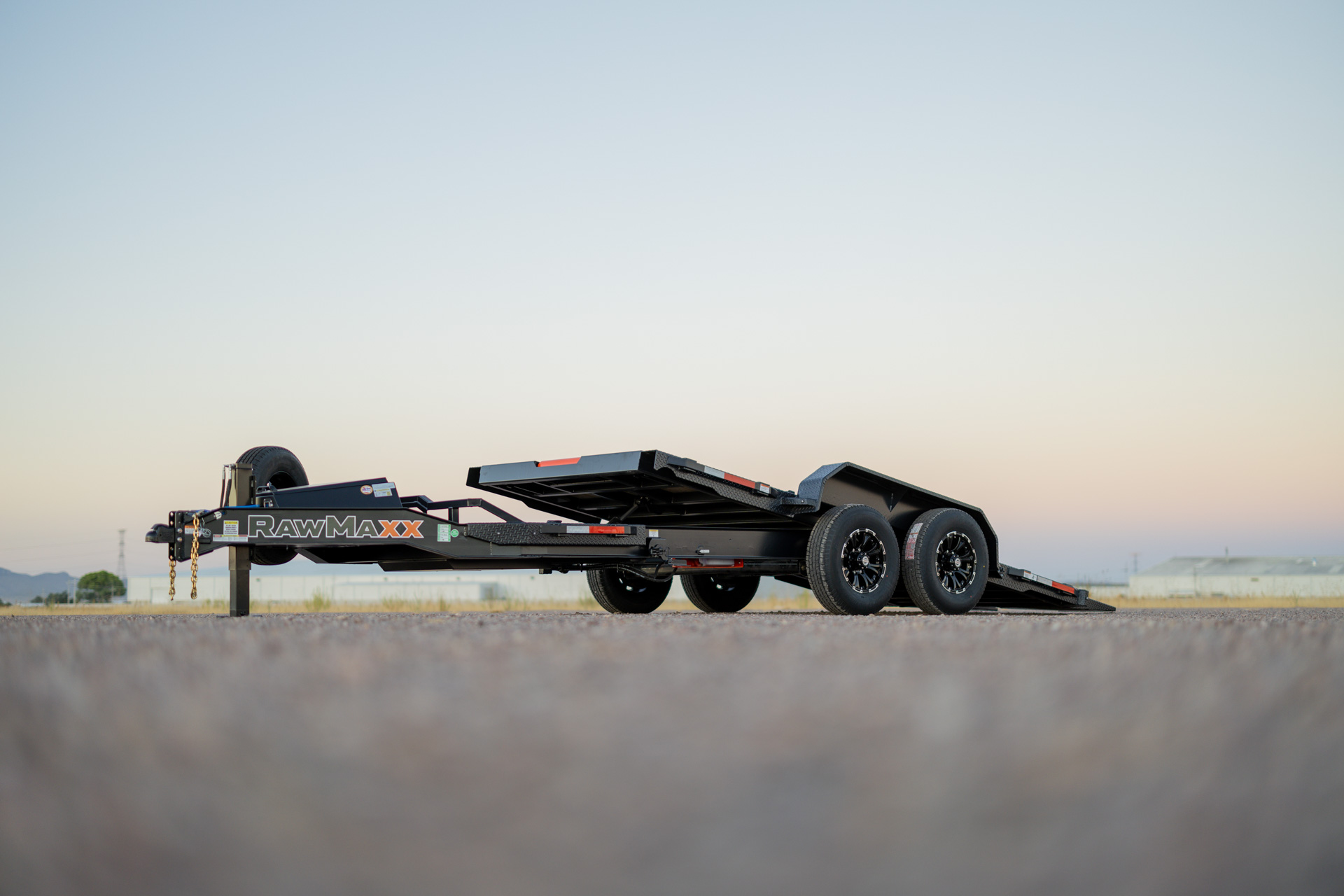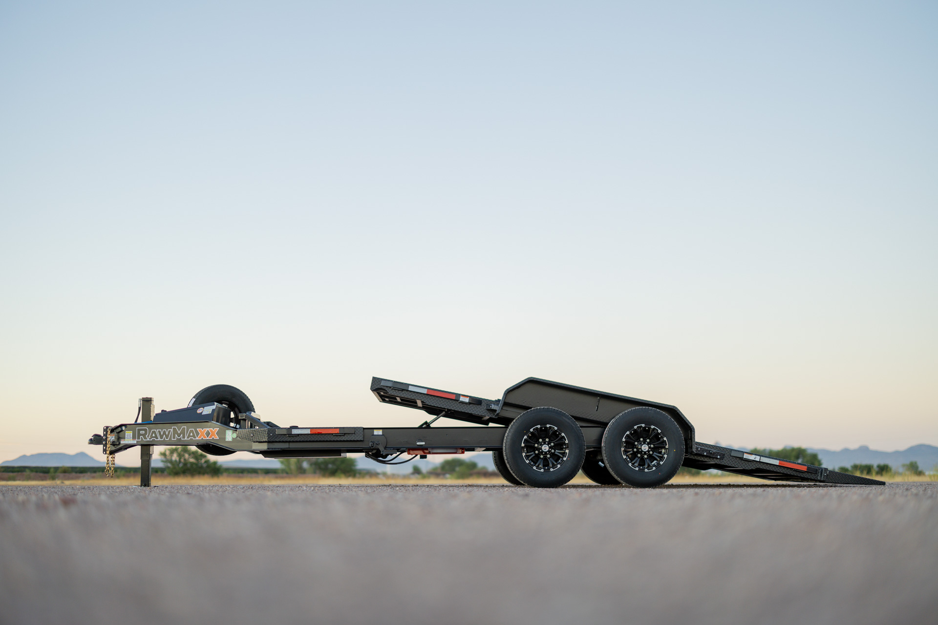 When loading speed, balance, and simplicity matter most, the RawMaxx G7X BP delivers. Available in 20’, 22’, and 24’ lengths, this gravity tilt bumper pull is rated at 14,000 lbs. GVWR with over 11,600 lbs. of usable load capacity, making it an ideal solution for hauling vehicles, equipment, and machinery without the need for ramps or hydraulics.
