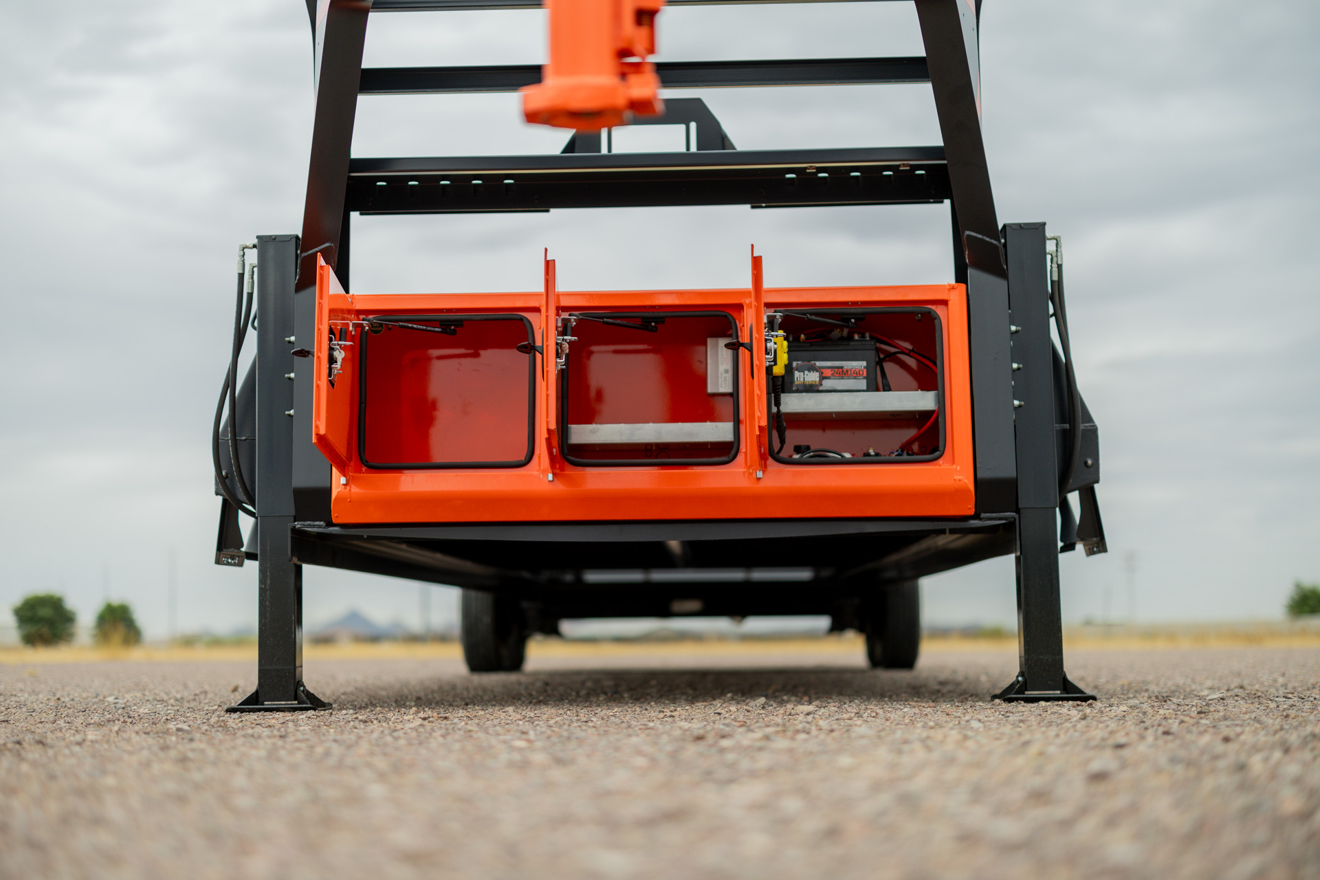 - Front Tool Box: Between Risers