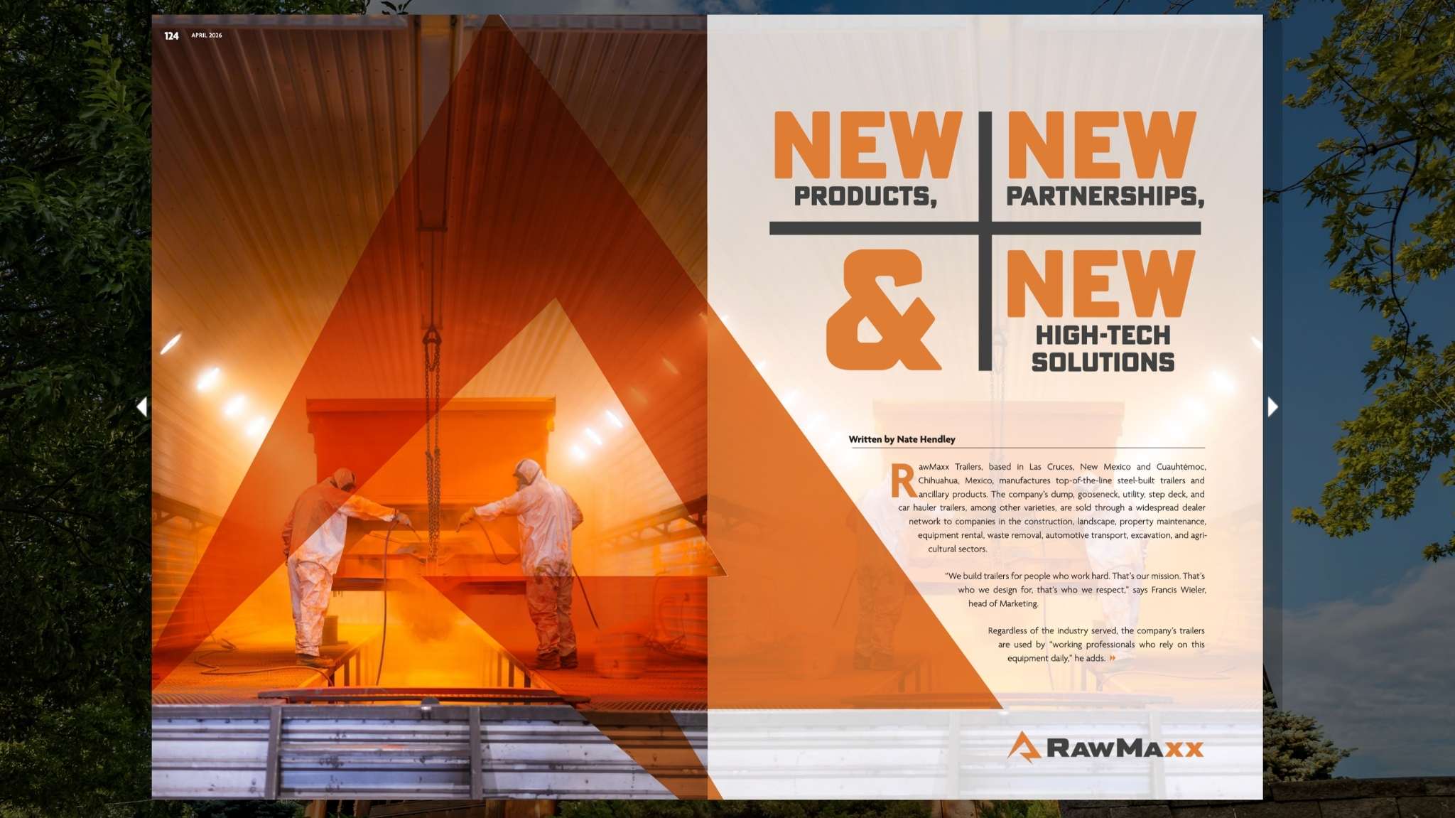 The feature also talks about the people behind the brand. It describes RawMaxx as a blue-collar, performance-driven company with a practical culture and a focus on product quality, customer support, and continuous improvement. That part matters, because a heavy-duty trailer is only as good as the standards behind it.
